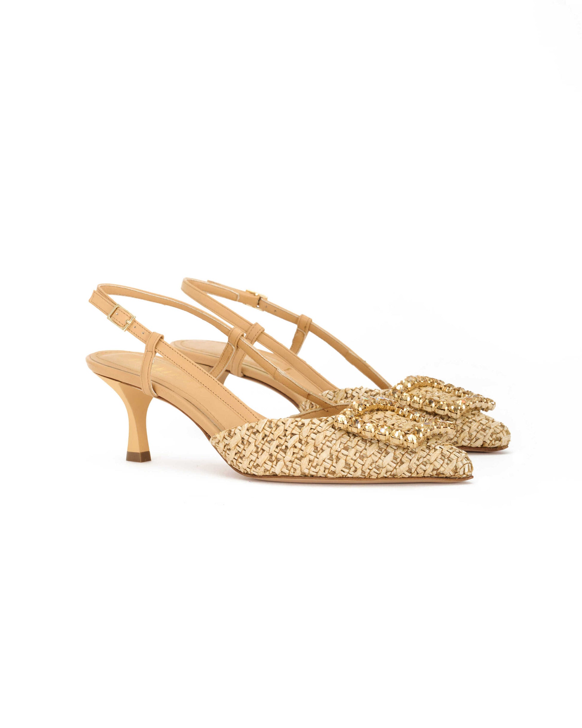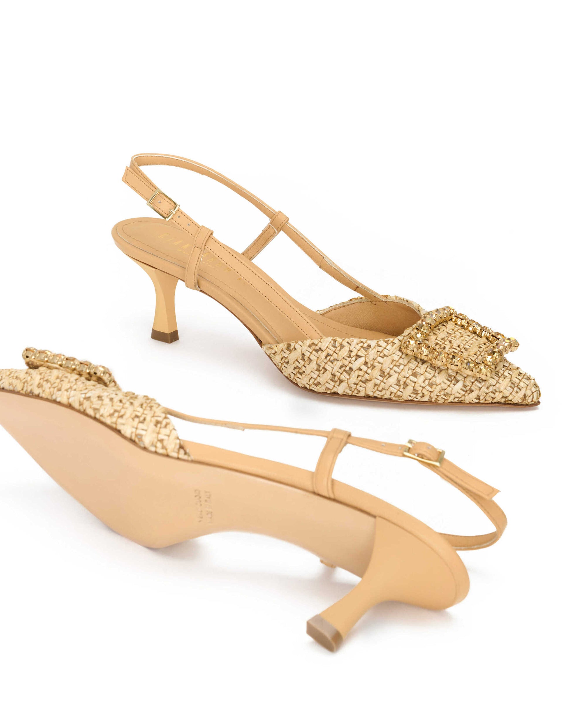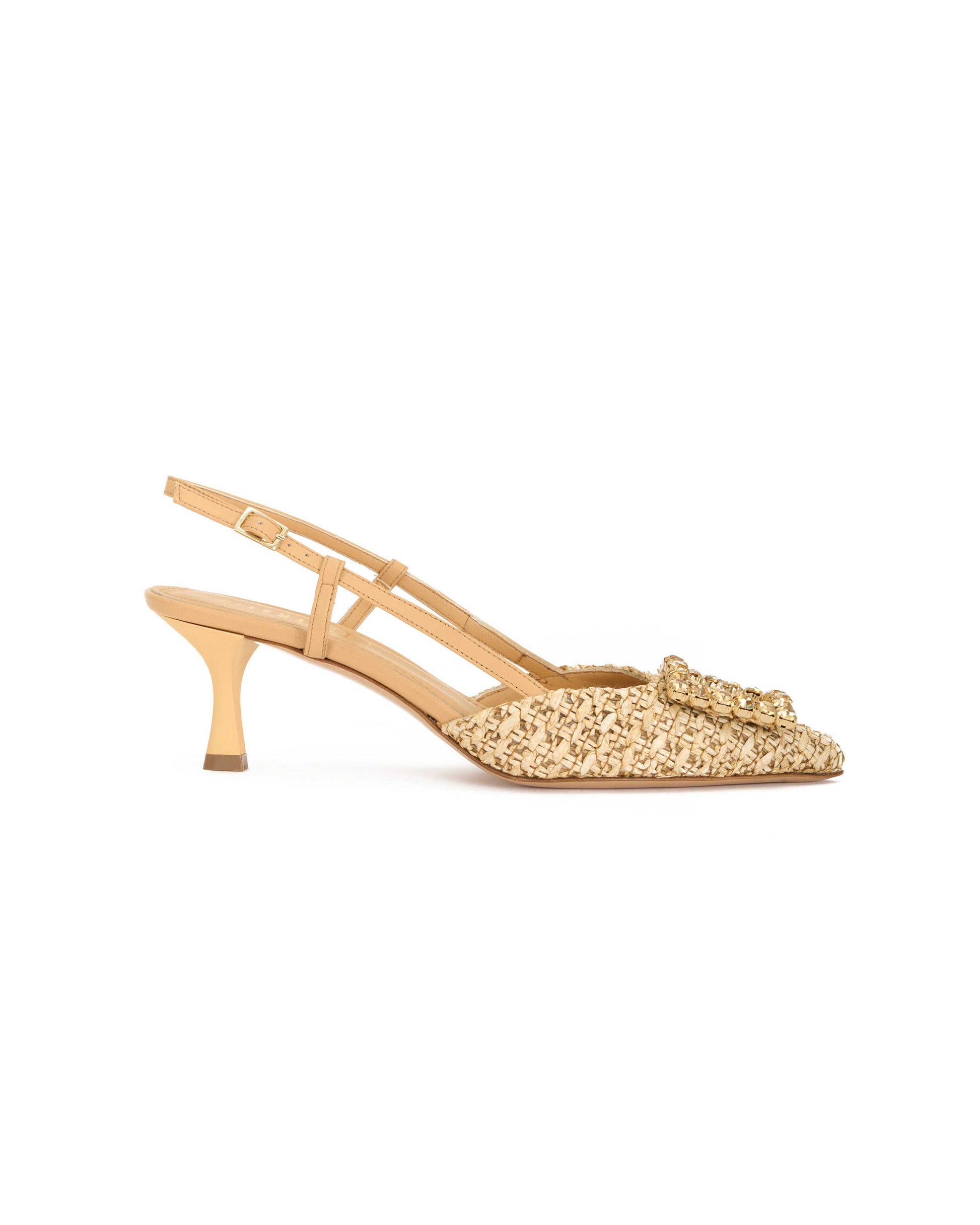 Gianmarco F. Slingback Donna in raffia legno e nappa legno